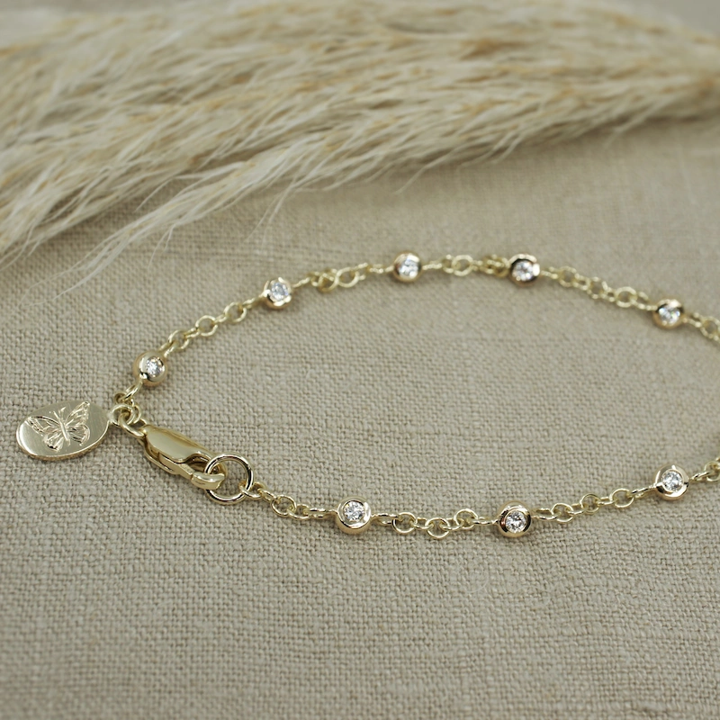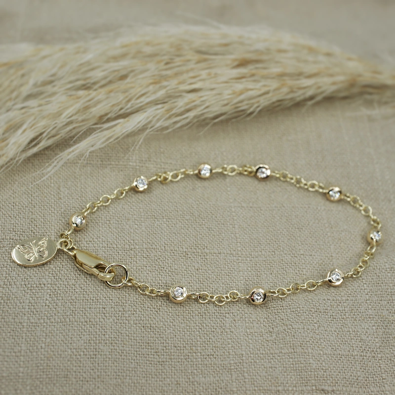 Dainty diamond gold chain bracelet with butterfly charm